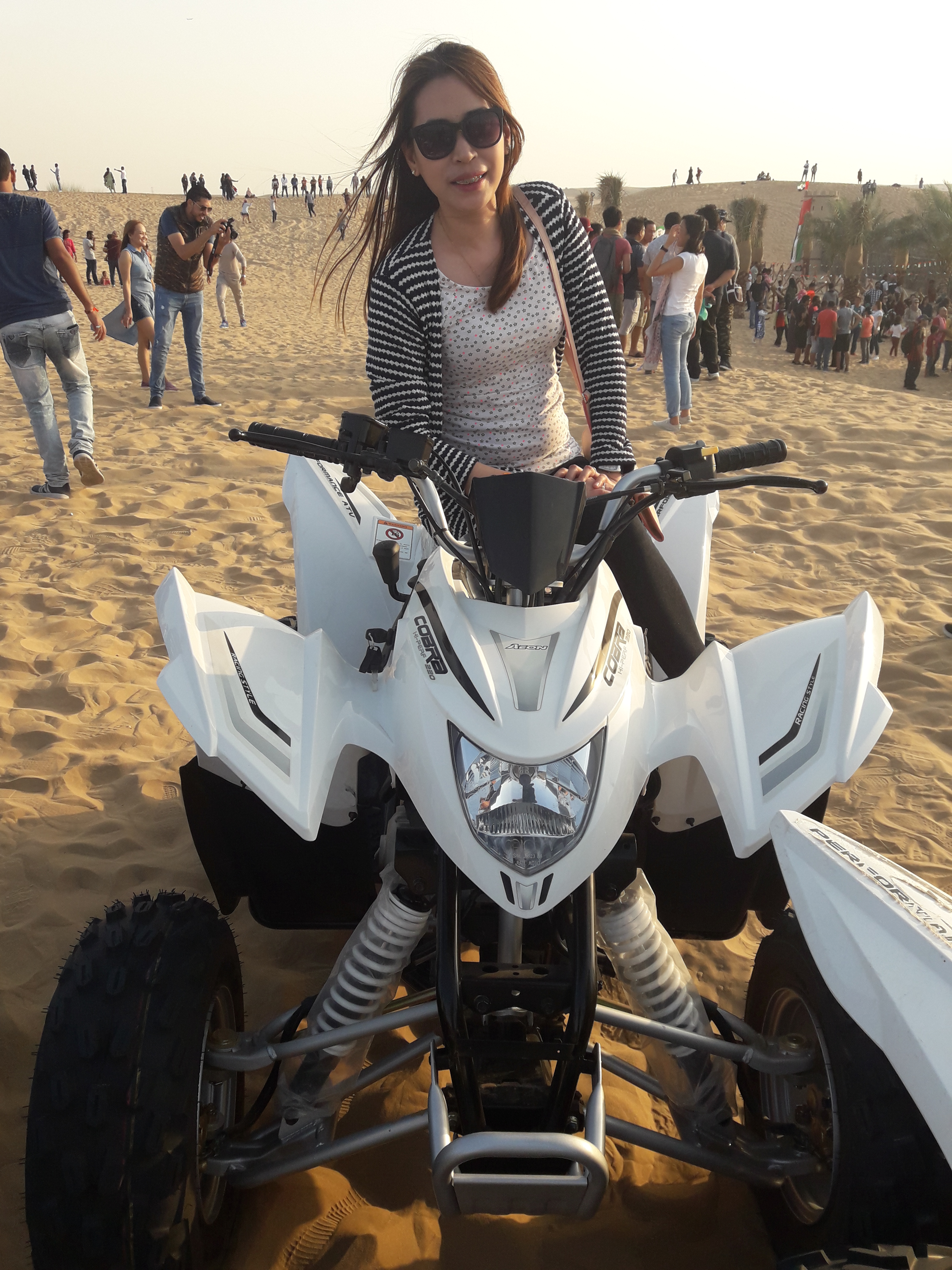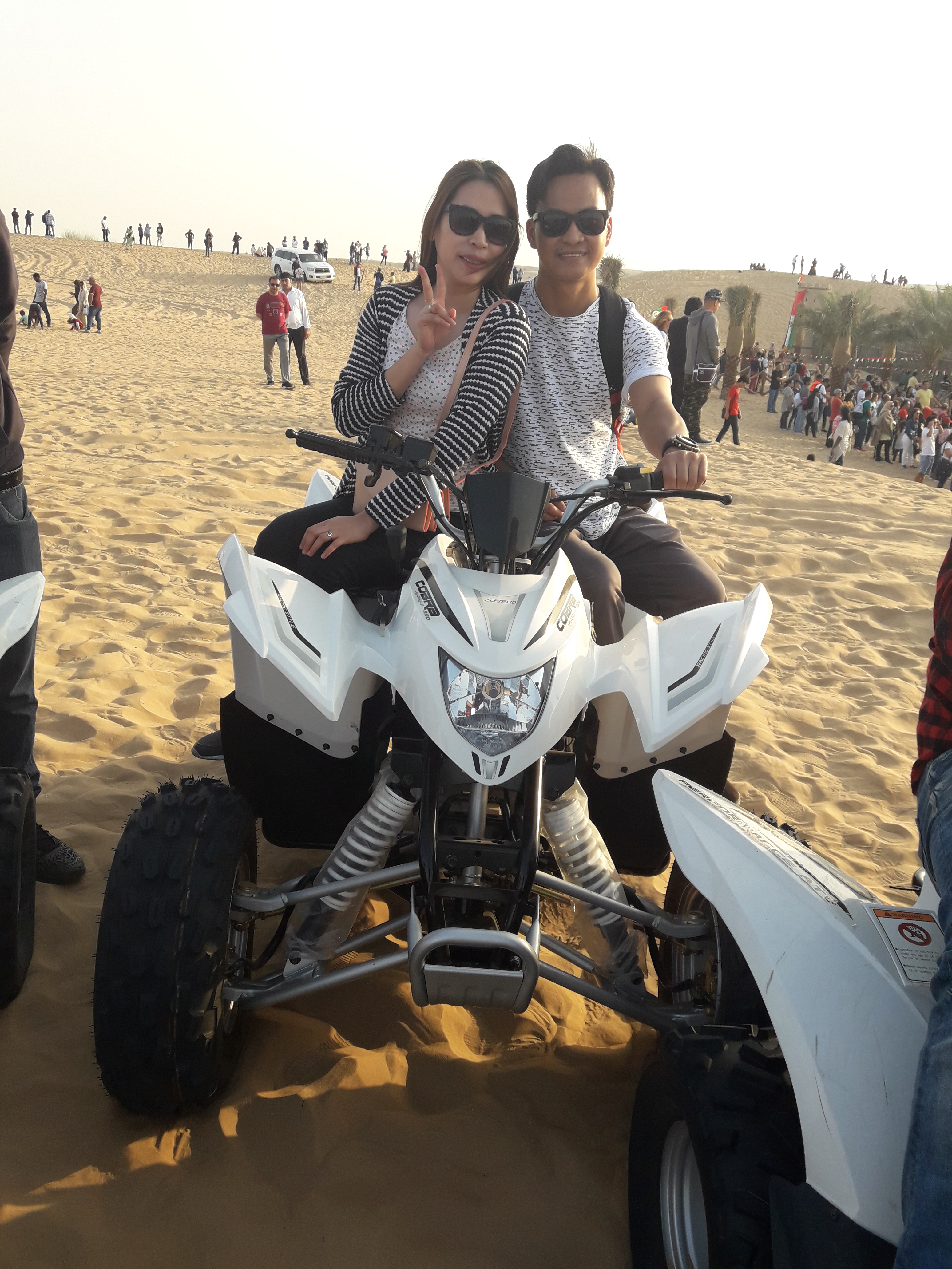 After the adrenaline high of dune bashing, we drove to the desert camp where it was time for the next activity: quad riding!
